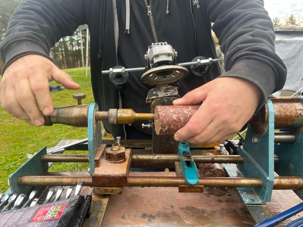 Tillsammans med vännen och älvdalingen Tord Jönsson byggde han en maskin för att forma kloten. Torbjörn själv svetsar inte, men han visste exakt vad han ville ha.