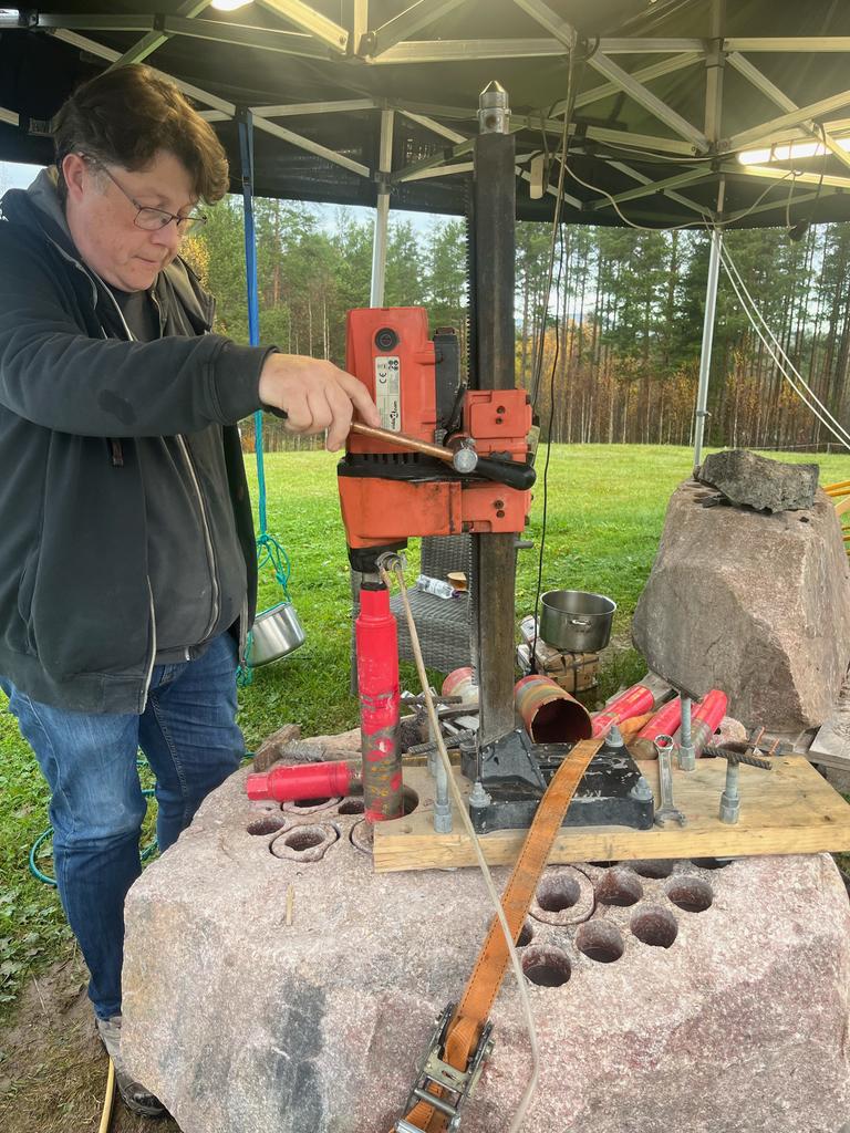 Produktionen är tidskrävande. Först borrar Torbjörn ut kärnor ur granitblock – 3 till 4 decimeter i timmen, ett klot i timmen. Varje kärna kapas till rätt längd, borras i båda ändar för att kunna sitta fast i formmaskinen. Sedan formas kulan grovt med vinkelslip, innan hålen kapas bort och den långa processen med handslipning tar vid.