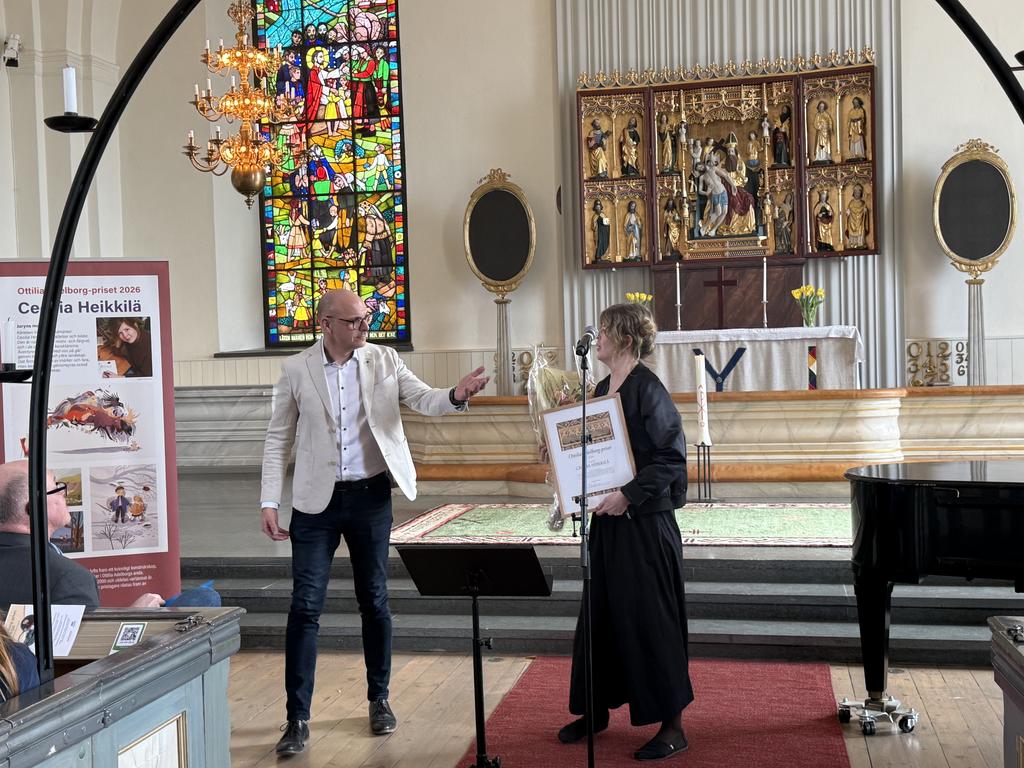 — Detta är det finaste pris som en barnboksillustratör och författare kan få. Jag skulle säga att detta är världens kräsnaste jury, de har verkligen arbetat hårt med att jobba fram vem som ska få det här priset. Mitt allra största tack till er, sa Cecilia Heikkilä i sitt tacktal och riktade sig mot de skolklasser som bänkat sig i kyrkan.