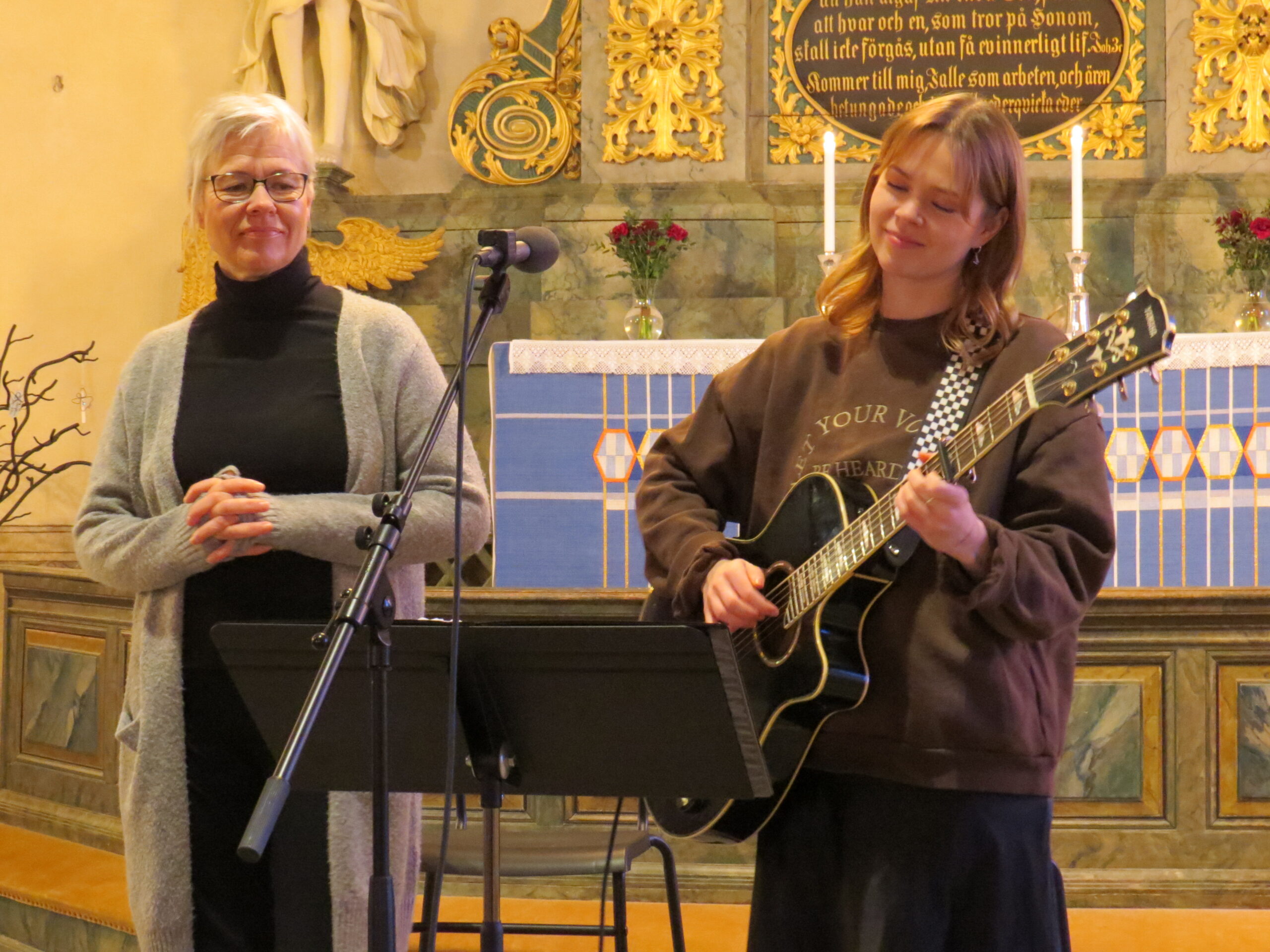Alla hjärtans dag bjöd mor och dotter, Anna-Karin Larsdotter Linder och Sara Linder, på en personligt utformad sångstund under musik vid helgsmål i Svärdsjö kyrka.