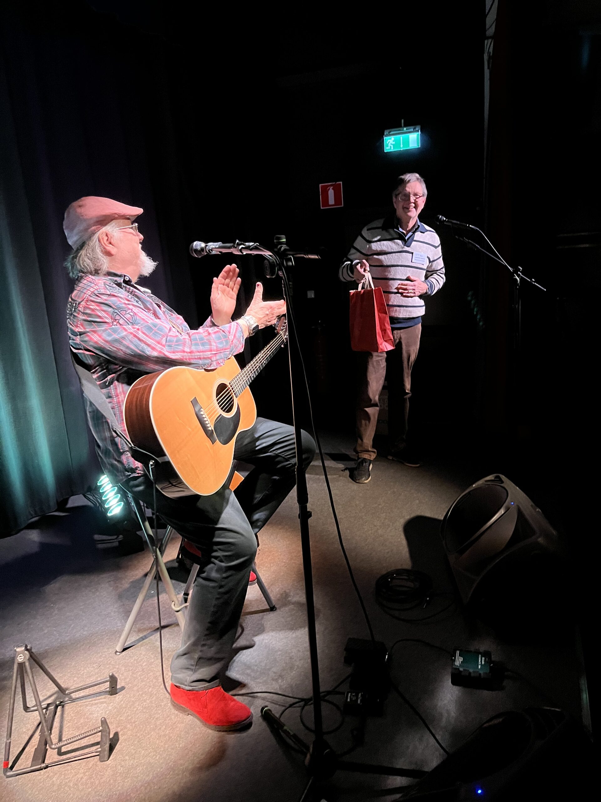 Han hade gitarren till hands hela tiden. Ur hans fingrar strömmade melodisnuttar och förstärkte berättandet. Då och då fick vi höra hela låtar och kompositioner. Vi lyssnare märkte att han nu ser tillbaka på en lång och storslagen musikgärning som kommer att leva kvar länge.