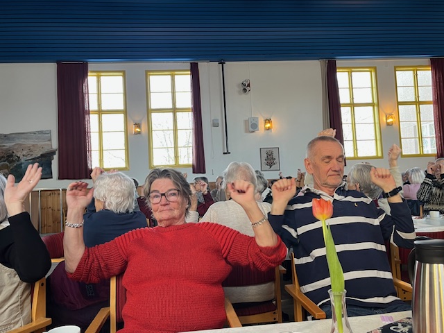 Sedan tog Johanna Andersson över och satte direkt publiken i rörelse med några lätta övningar. Johanna berättade om sitt arbete som hälsofrämjare 65+ exempelvis. om aktiviteter centralt och i byarna.