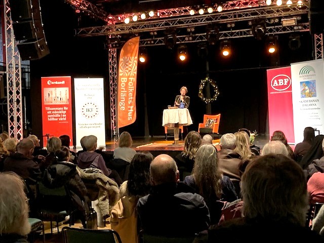 På fredagen föreläste Gudrun Schyman på Cozmoz, Folkets Hus, om att ”Vara människa i en omänsklig tid”. Cirka 100 personer lyssnade och samtalade om makt, kontroll, våldets destruktiva krafter, men också om engagemang, mänsklig säkerhet, folkbildning och hur viktigt det är att vi, de goda krafterna kliver fram och håller ihop.